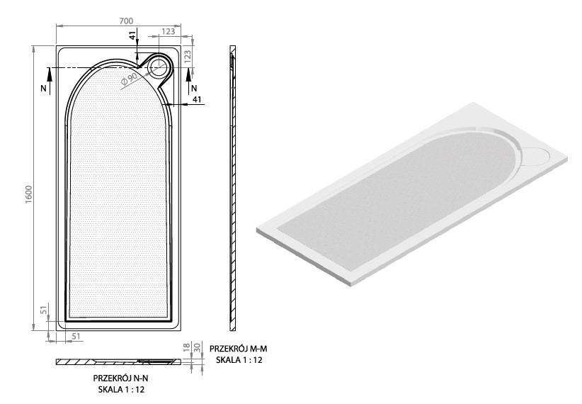 Vayer Virgo Brodzik prysznicowy prostokątny 160x70 cm biały 160.070.001.2-1.0.0.0.0