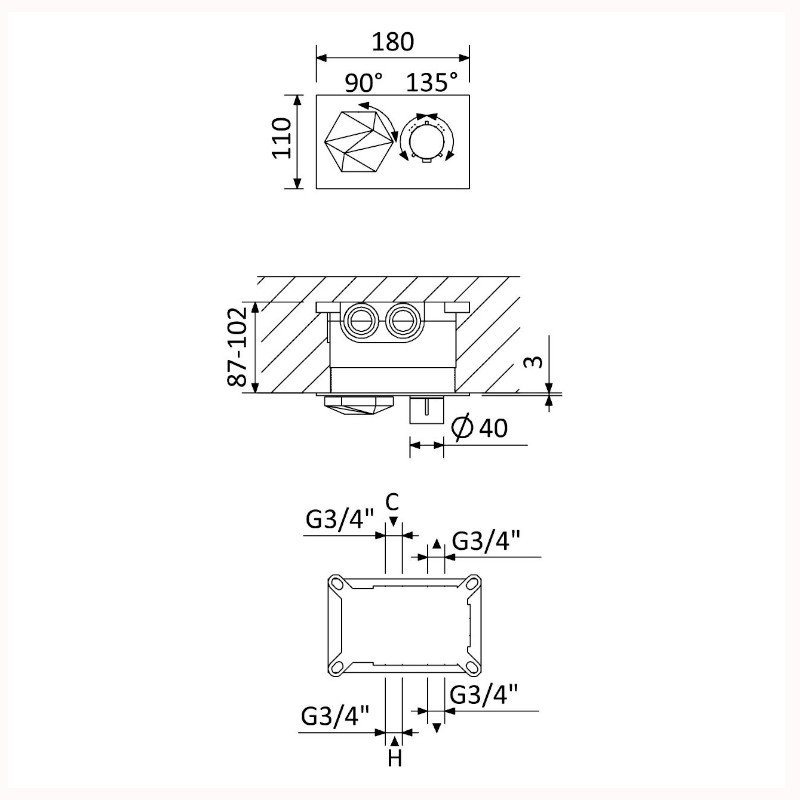 Przełącznik 2-drożny, podtynkowy z elementem montażowym podtynkowym w komplecie.