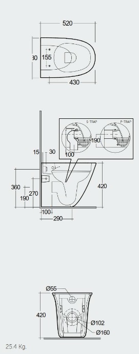 Rak Ceramika Sensation Miska bezrantowa 52x38 biały połysk SENWC1346AWHA