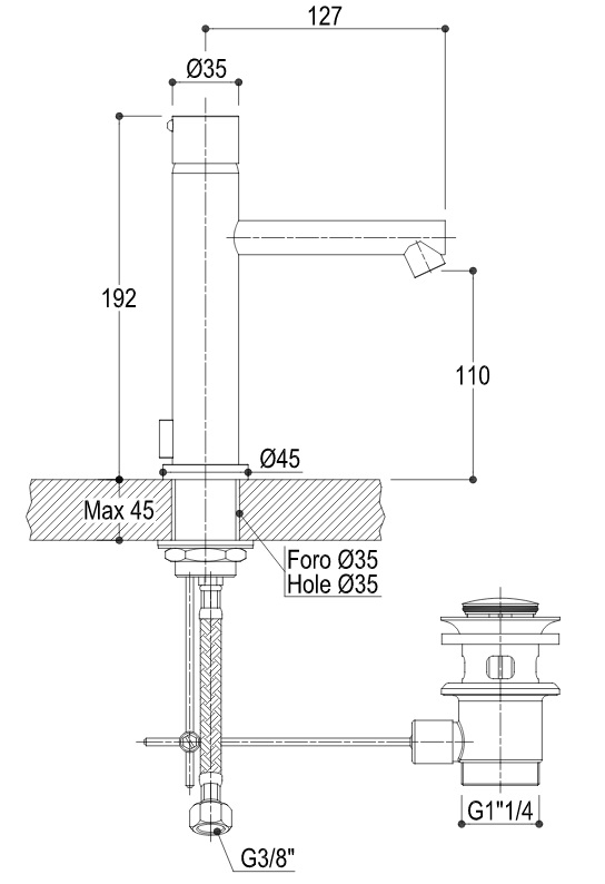 Ritmonio Diametro35 Bateria umywalkowa 1-otworowa biała E0BA0121LC03