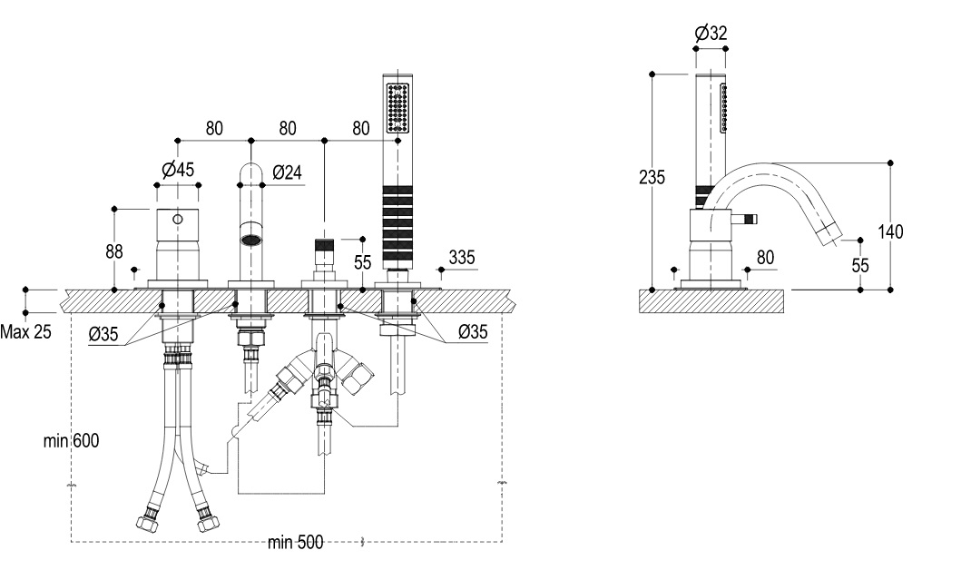 Ritmonio Diametro35 Bateria wannowa na brzeg wanny 4-otworowa biała E0BA0432C03