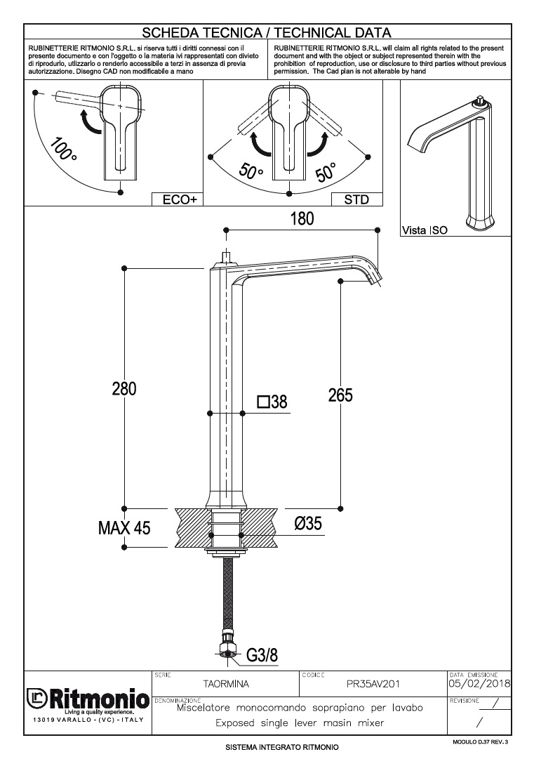 Ritmonio Taormina Bateria umywalkowa jednootworowa bez korka brushed black chrome PR35AV201BLX