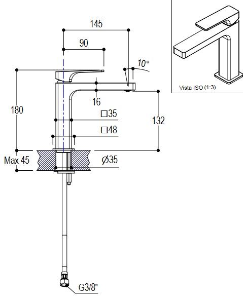 Wysokość wylewki: 13,2 cm