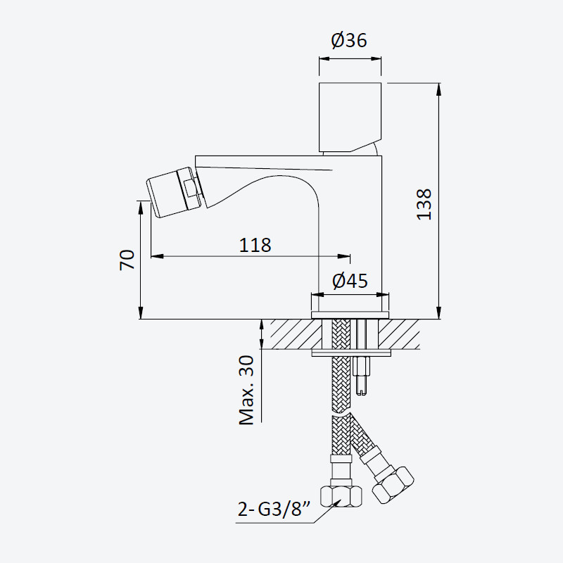 Wysokość wylewki: 70 mm