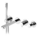 Bateria wannowo-natryskowa podtynkowa z wylewką i zestawem: uchwyt ścienny z przyłączem, wąż i słuchawką