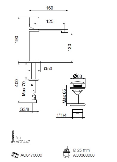 Webert One-X Bateria umywalkowa 1-otworowa z korkiem klik klak stal/czarny OX830101.441