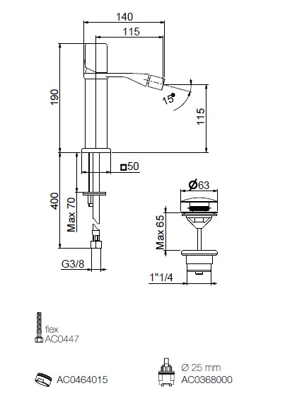 Webert One-X Bateria bidetowa 1-otworowa z korkiem klik klak stal/czarny OX840101.441