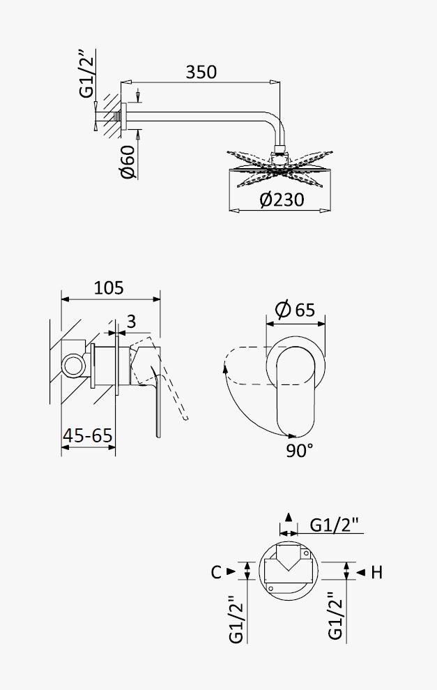 Średnica deszczownicy: 230 mm