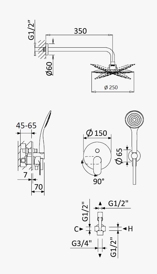 Bruma Coral Zestaw natryskowy podtynkowy z deszczownicą ścienną Ø 250 mm i słuchawką Chrom 1947621CR