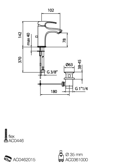 Webert Kimono Bateria umywalkowa 1-otworowa z korkiem klik klak chrom KI830101.015