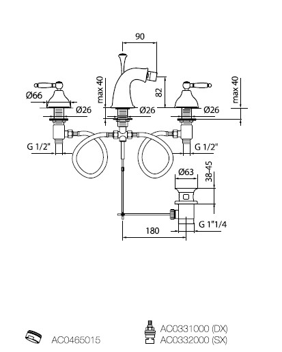 Webert Dorian Bateria bidetowa 3-otworowa z korkiem klik klak chrom DO710202.015