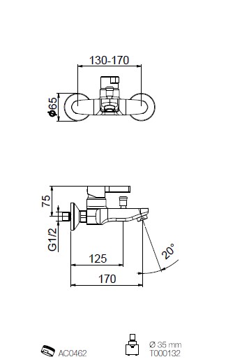 Webert Do Re Mi Bateria wannowa jednouchwytowa ścienna chrom DR850102.015