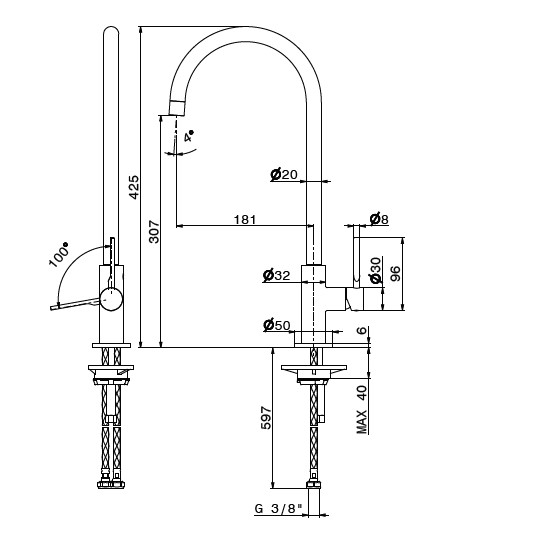 Newform Maki Bateria zlewozmywakowa jednouchwytowa wysoka z obrotową wylewką chrom 71830.21.018