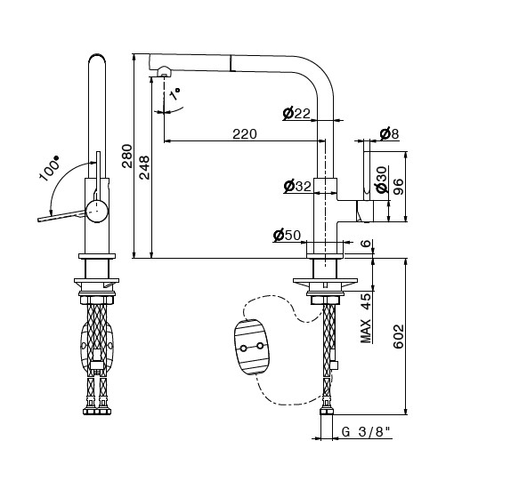 Newform Maki Bateria zlewozmywakowa jednouchwytowa z obrotową i wyciąganą wylewką chrom 71825.21.018