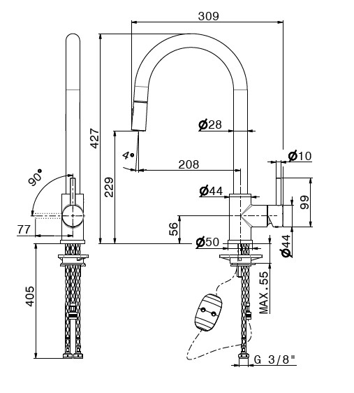 Wysokość wylewki: 22,9 cm