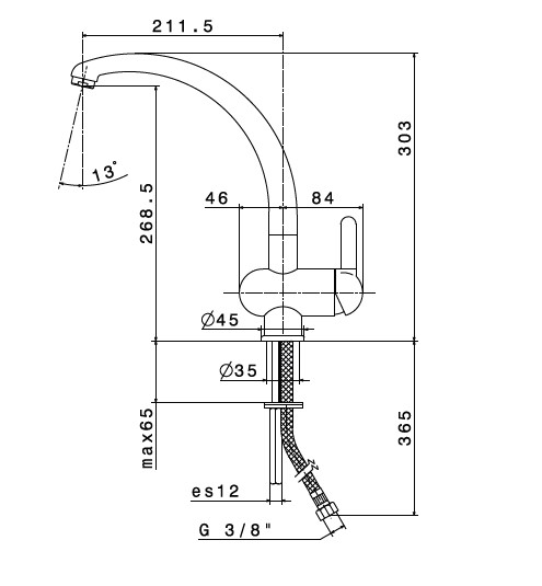 Wysokość wylewki: 26,85 cm