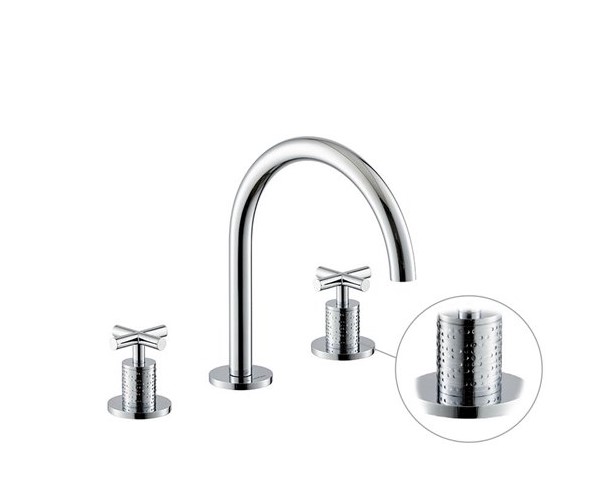 Newform Blink luxury Bateria umywalkowa 3-otworowa z małą wylewką i teksturą chrom 70900.21.018