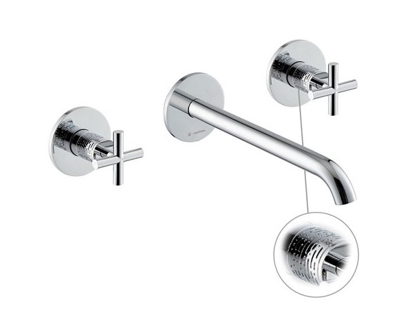 Newform Blink luxury Bateria umywalkowa z długą wylewką 3-otworowa podtynkowa część zewnętrzna z teksturą chrom 70922E.21.018