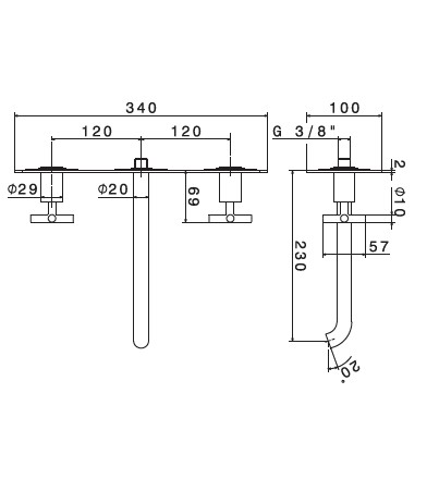 Newform Blink Bateria umywalkowa z długą wylewką 3-otworowa podtynkowa część zewnętrzna chrom 70823E.21.018