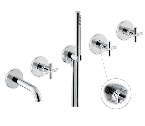 Newform Blink luxury Bateria wannowa podtynkowa z zestawem prysznicowym z teksturą część zewnętrzna chrom 70973E.21.018