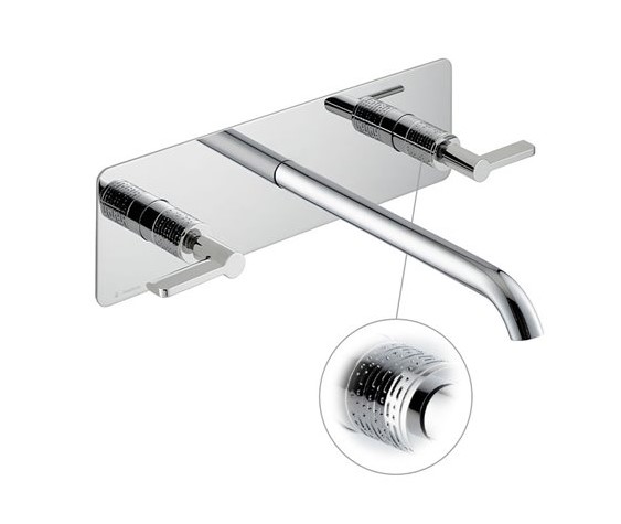 Newform Blink Chic luxury Bateria umywalkowa ścienna 3-otworowa z długą wylewką z teksturą część zewnętrzna chrom 71123E.21.018