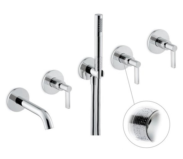 Newform Blink Chic luxury Bateria wannowa podtynkowa z zestawem prysznicowym z teksturą część zewnętrzna chrom 71173E.21.018