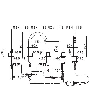 Newform Blink Chic Bateria wannowa 5-otworowa na brzeg wanny chrom 71082C.21.018