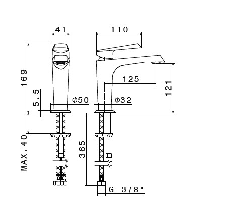 Newform Nio Bateria umywalkowa jednouchwytowa bez korka chrom 68912.21.018