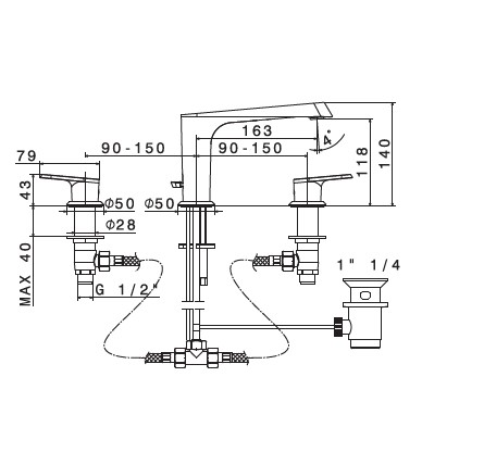 Newform Nio Bateria umywalkowa 3-otworowa z korkiem chrom 68901.21.018