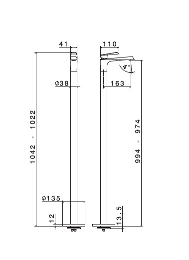 Newform Nio Bateria umywalkowa z kolumną podłogowa część zewnętrzna chrom 68918E.21.018