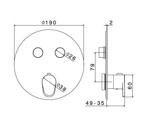 Newform Nio Bateria prysznicowa termostatyczna podtynkowa z dwoma wyjściami część zewnętrzna chrom 70423E.21.018