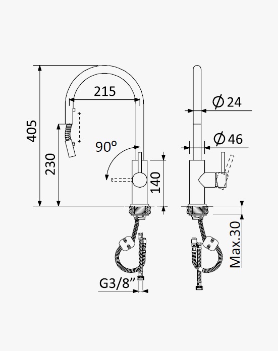 Bruma Ginger Bateria zlewozmywakowa z obrotową wylewką i wyjmowanym peratorem Chrom 1070542CR