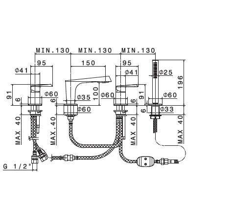 Newform Nio Bateria wannowa 4-otworowa na brzeg wanny chrom 68982C.21.018