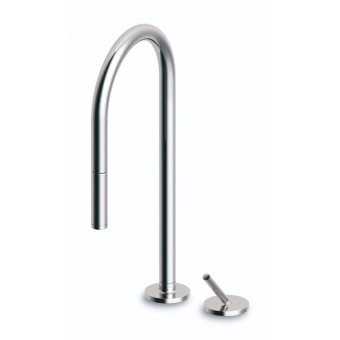 Jednouchwytowa bateria zlewozmywakowa z wylewką obrotową i słuchawką wyciąganą, perlator, wężyki elastyczne.