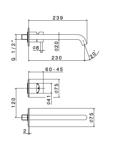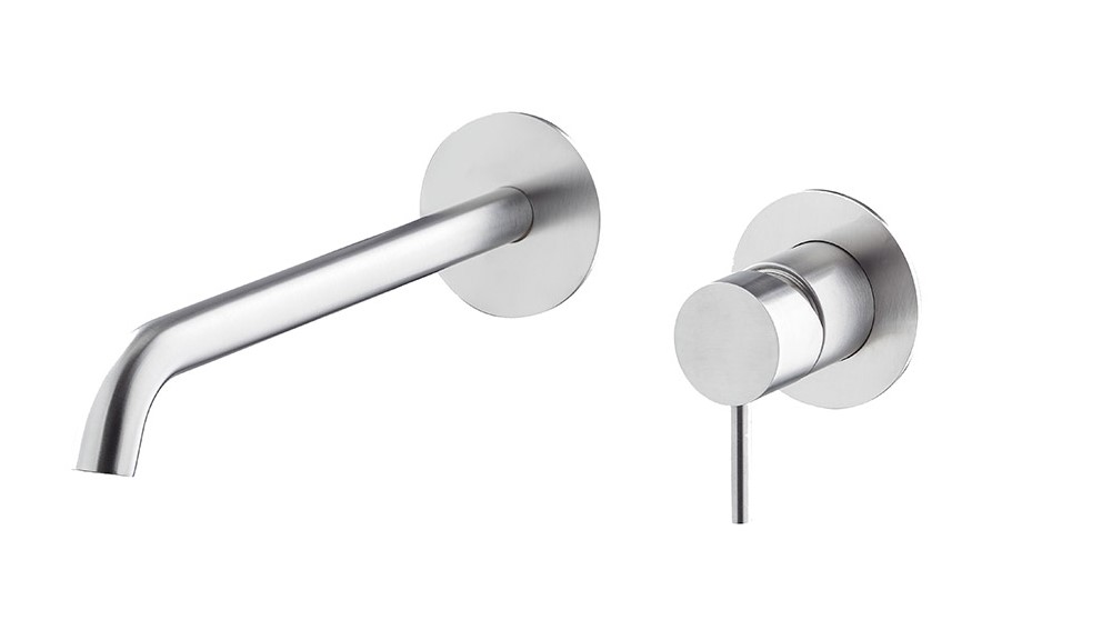Newform X-Steel 316 Bateria umywalkowa ścienna jednouchwytowa z długą wylewką część zewnętrzna stal nierdzewna 69630EX.50.050