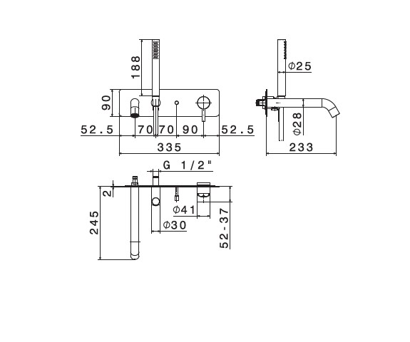 Przełącznik, wylewka ścienna i zestaw prysznicowy