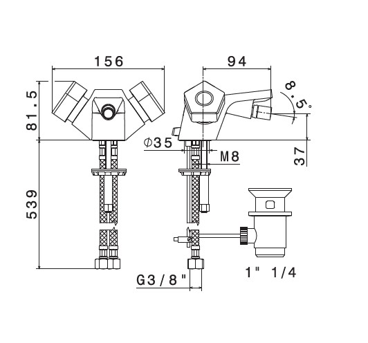 Newform Park Limited Edition Bateria bidetowa jednouchwytowa z korkiem chrom/czarny mat 69735.05.093