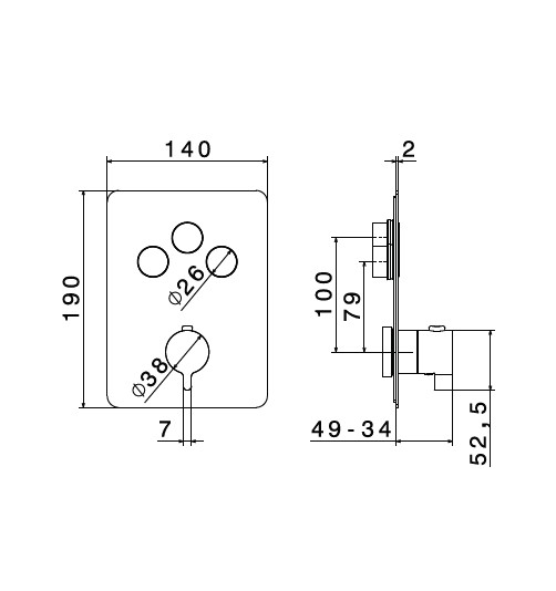 Newform Haka Bateria prysznicowa termostatyczna podtynkowa z trzema wyjściami część zewnętrzna chrom 70405E.21.018