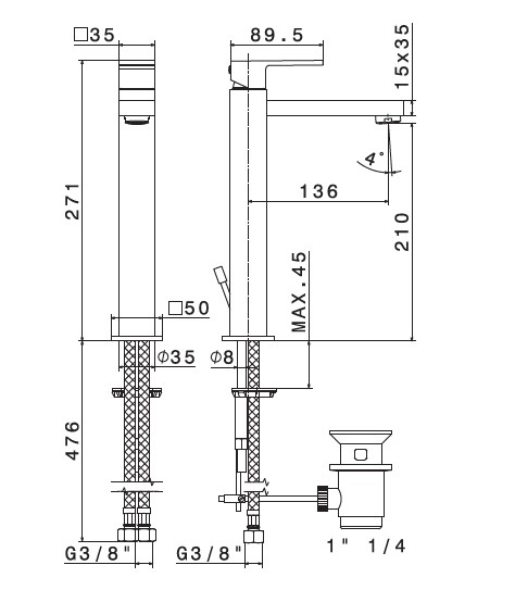 Newform Ergo-Q Bateria umywalkowa jednouchwytowa z korkiem wysoka chrom 66413.21.018