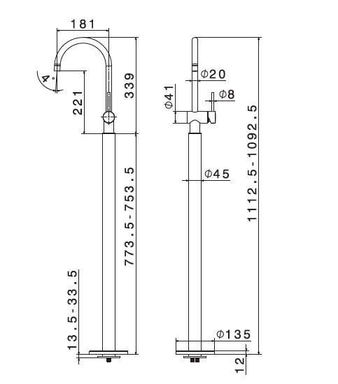Newform XT Bateria umywalkowa z kolumną podłogowa część zewnętrzna chrom 4224E.21.018