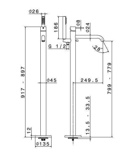 Newform XT Bateria wannowa podtynkowa podłogowa z zestawem prysznicowym część zewnętrzna chrom 4278E.21.018
