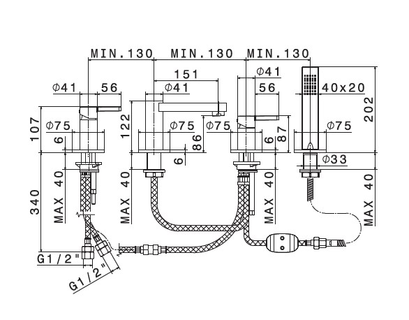 Newform Ergo Bateria wannowa 4-otworowa na brzeg wanny chrom 65882C.21.018