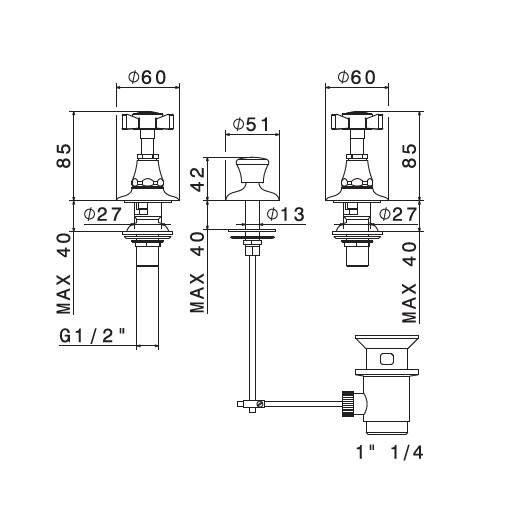Newform Daytime Bateria bidetowa 3-otworowa z korkiem chrom 69015.21.018