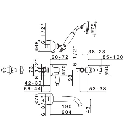Newform Daytime Bateria wannowa 5-otworowa podtynkowa chrom 69045.21.018