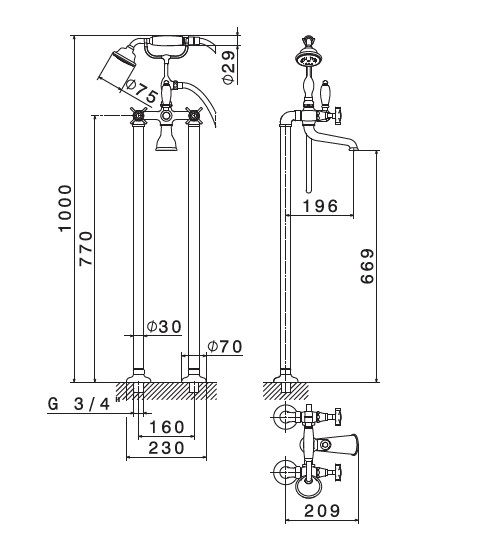 Newform Daytime Bateria wannowa podłogowa z kolumnami z zestawem prysznicowym chrom 69085C.21.018