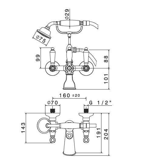 Newform Daytime Style Bateria wannowa ścienna z automatycznym przełącznikiem wanna/prysznic i zestawem prysznicowym chrom 69140C.21.018