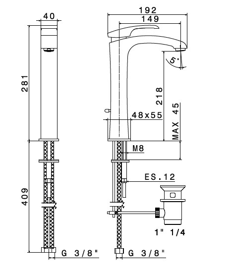 Wysokość wylewki: 21,8 cm