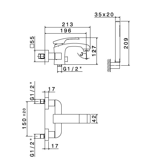 Newform X-Sense Bateria wannowa ścienna z zestawem prysznicowym chrom 62540C.21.018