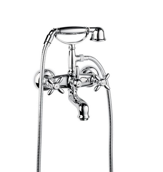 Newform Antea Bateria wannowa ścienna z mechanicznym przełącznikiem wanna/prysznic i zestawem prysznicowym chrom 9135.21.018