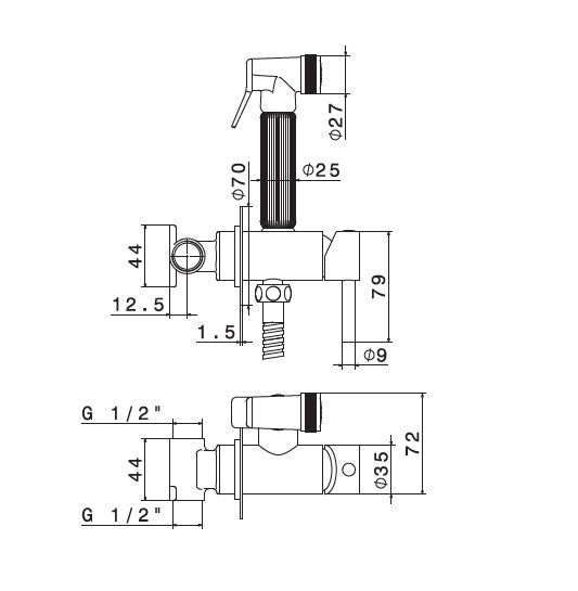 Newform Idroscopini Bidetka jednouchwytowa podtynkowa ze słuchawką retro i wężem chrom 27721.21.018